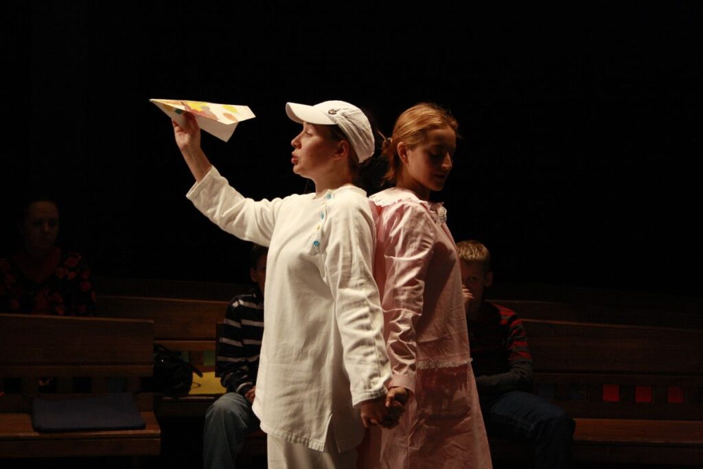 Первым спектаклем театра стал спектакль «Оскар и Розовая мама». Экспериментальная игра для двух актеров и зрителя — так назвала свой спектакль режиссер Анна Волкова. Зритель являлся непосредственным участником спектакля, он творил вместе с актерами, бумажная лента, которая весь спектакль как бы символизирует дорогу в бесконечность с появлением цветных красок и благодаря участию самих зрителей, обретала яркие цвета и становилась той дорогой, которой проходит главный герой и которой придется пройти всем нам.